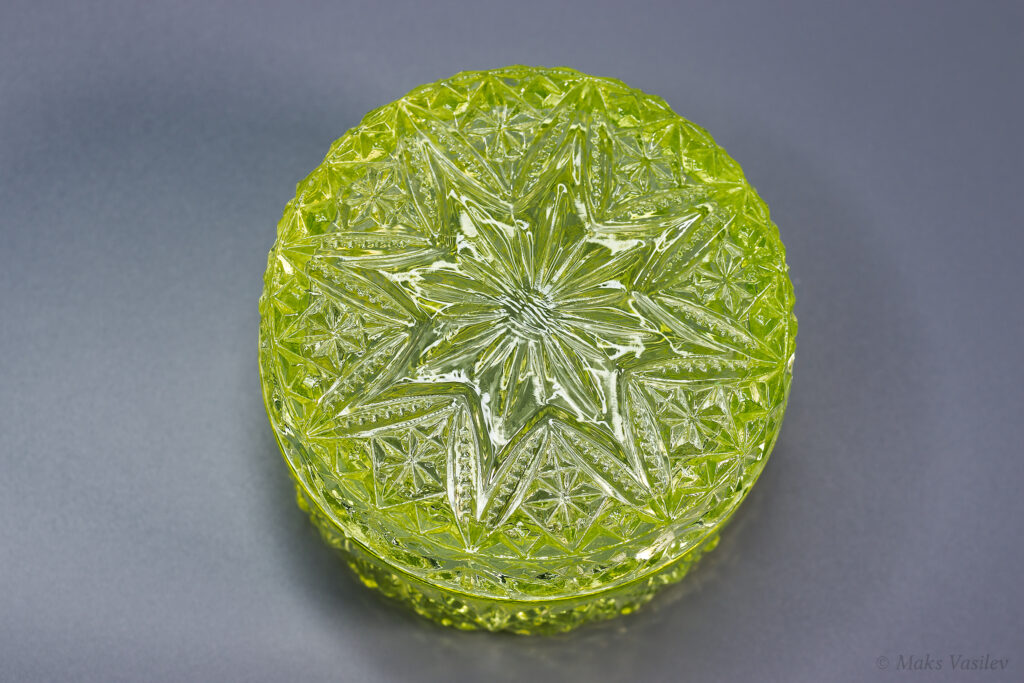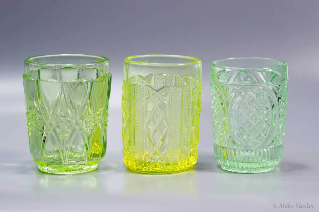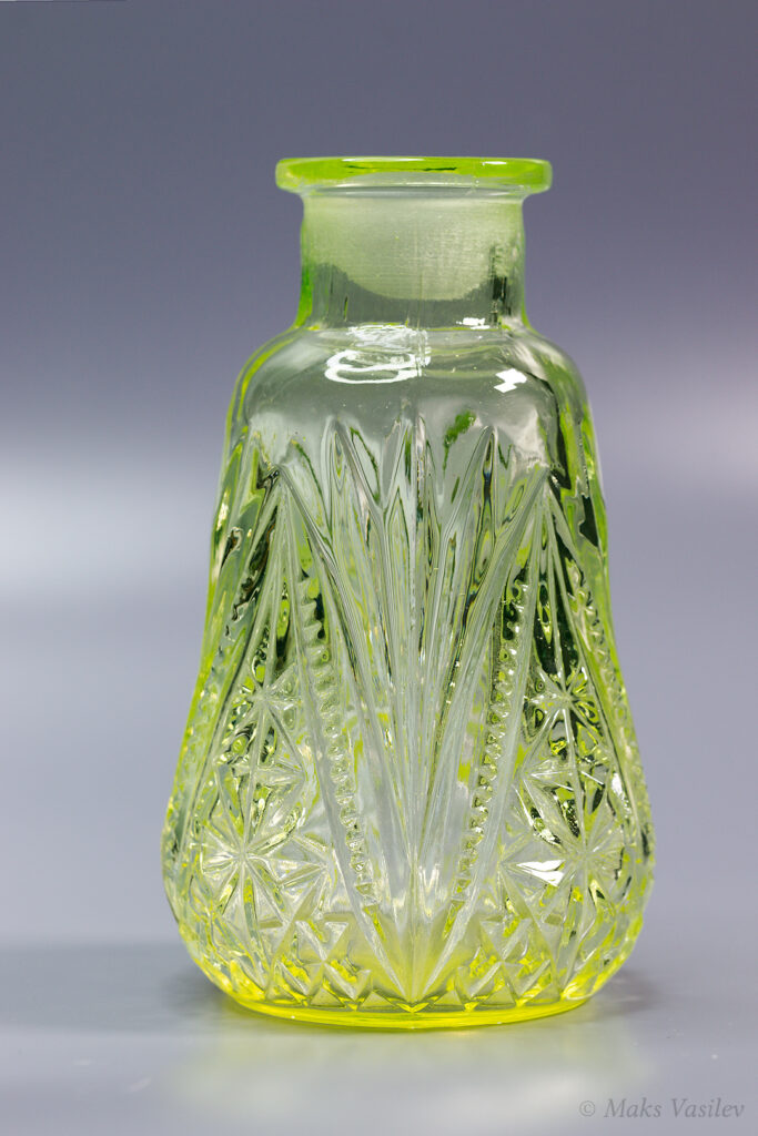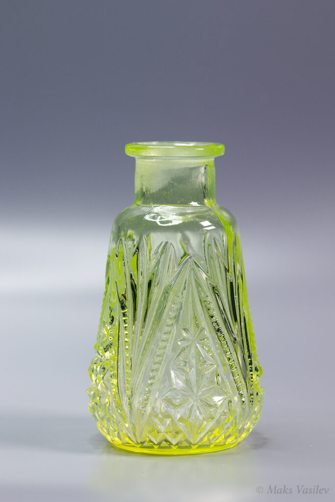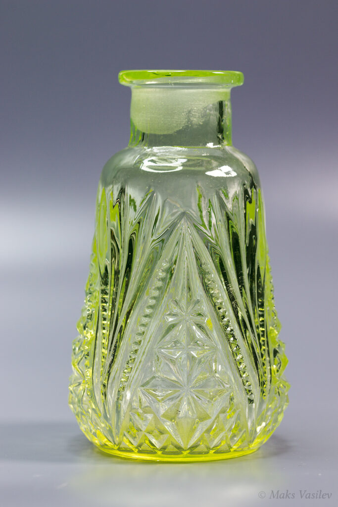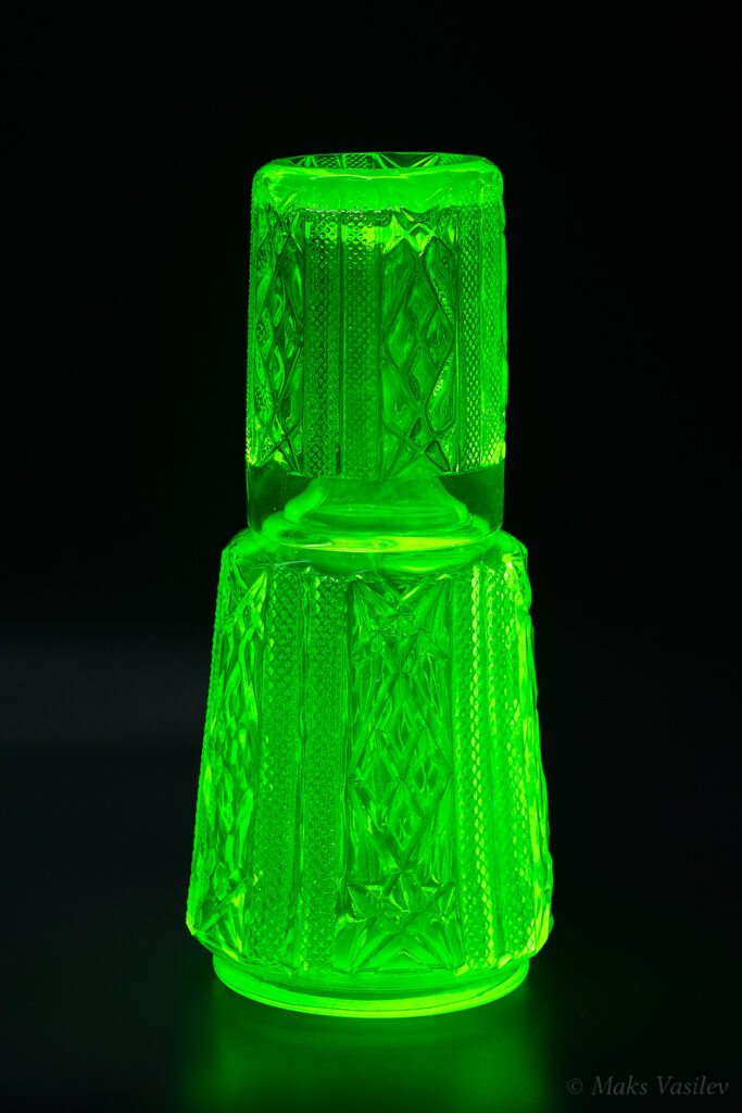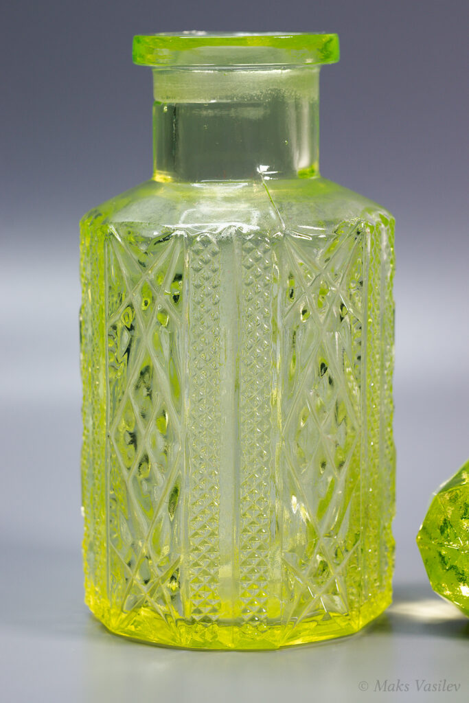 Паттерн на графине и на стакане так же, как и на большом флаконе () повторяется 5 раз и хоть на графине швы тщательно зашлифованы, их всё таки можно увидеть и судя по швам пресс форма состояла так же из 3-х не одинаковых и не симметричных частей.