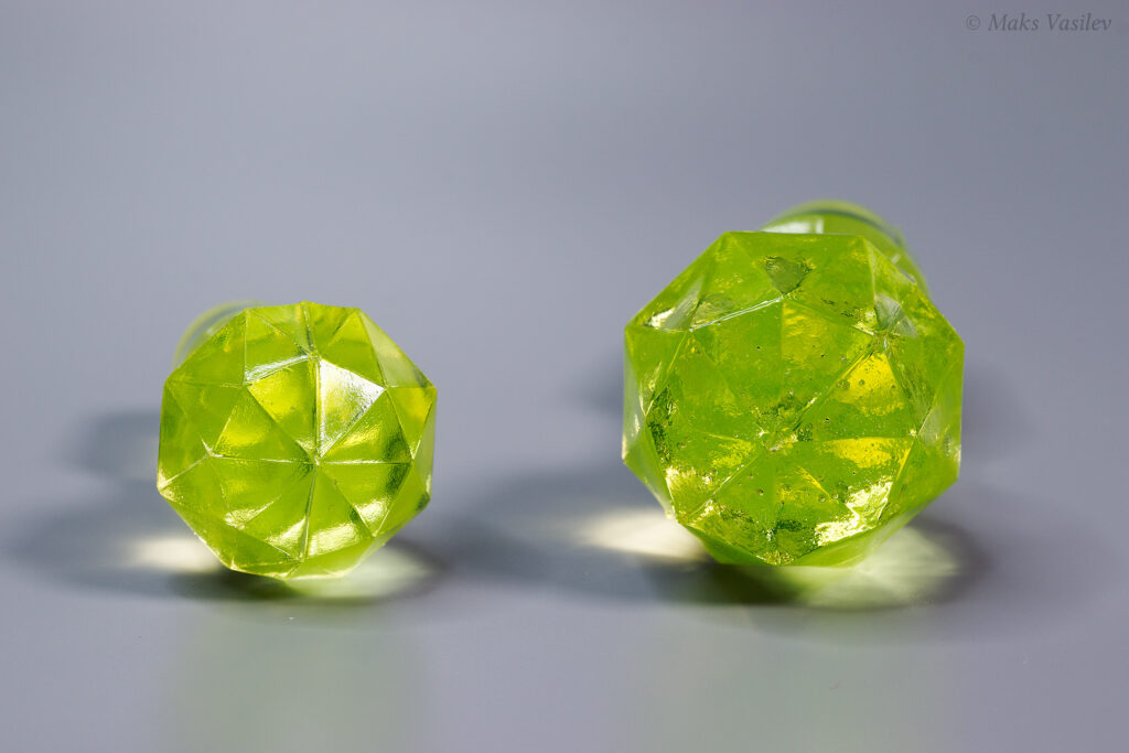 А форма прессовки маленького флакона (s002/1) судя по всему была симметричная из 4-х частей и паттерн повторяется 4 раза по кругу. В толщине дна малого флакона присутствует герметичный пузырь, целостность флакона не нарушена.