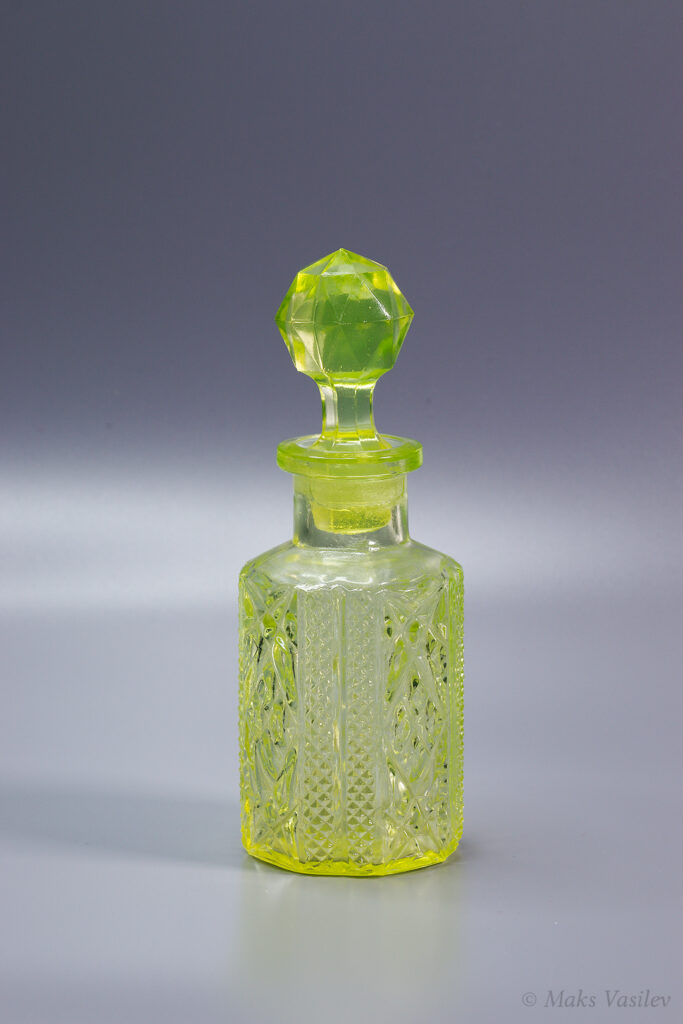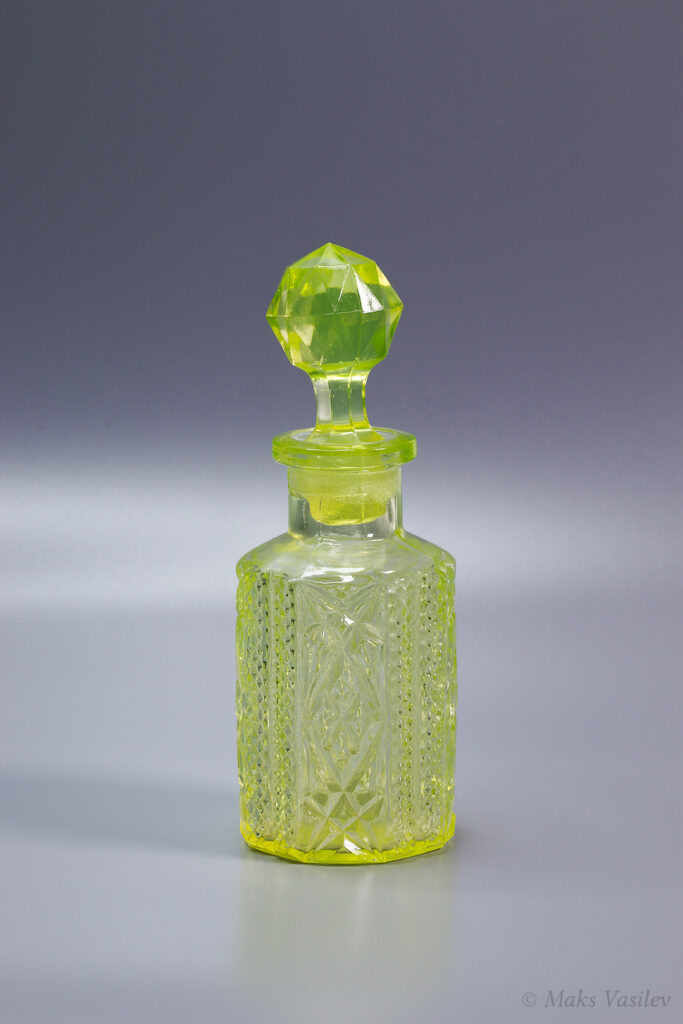 К сожалению пробка флакона утеряна. Сам флакон небольшой, мог использоваться для парфюмерии или для других целей. Пробка притёрта, но грубовато.