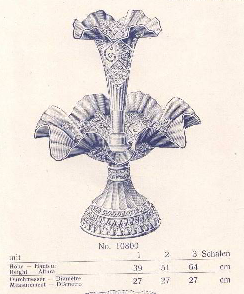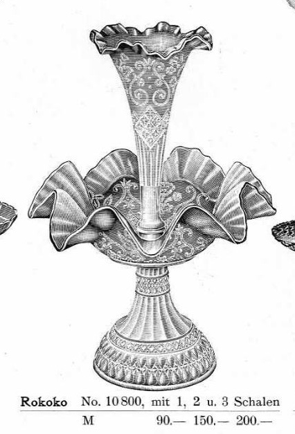 В каталогах Brockwitz Glass встречаются два наиболее похожих изделия, это блюдо идентичной формы и техники нанесения узора прессовкой стекла и двухъярусная ваза с орнаментом «Rokoko».