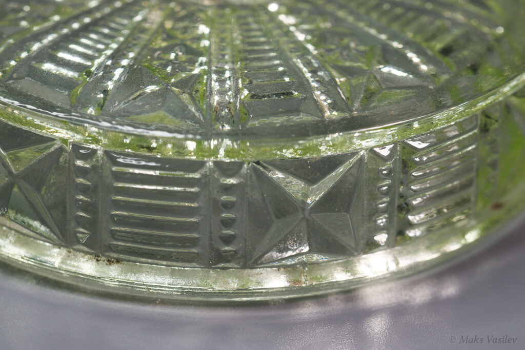 Весь орнамент паттерна на наружней стороне, за исключением верхней плоскости крышки, там рельеф паттерна изнутри крышки, но это заметно только при близком рассмотрении.